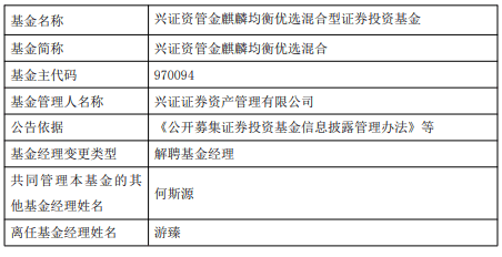 中国经济网北京10月30日讯 今日,兴证证券资产管理有限公司公告,游臻离任兴证资管金麒麟均衡优选混合。
